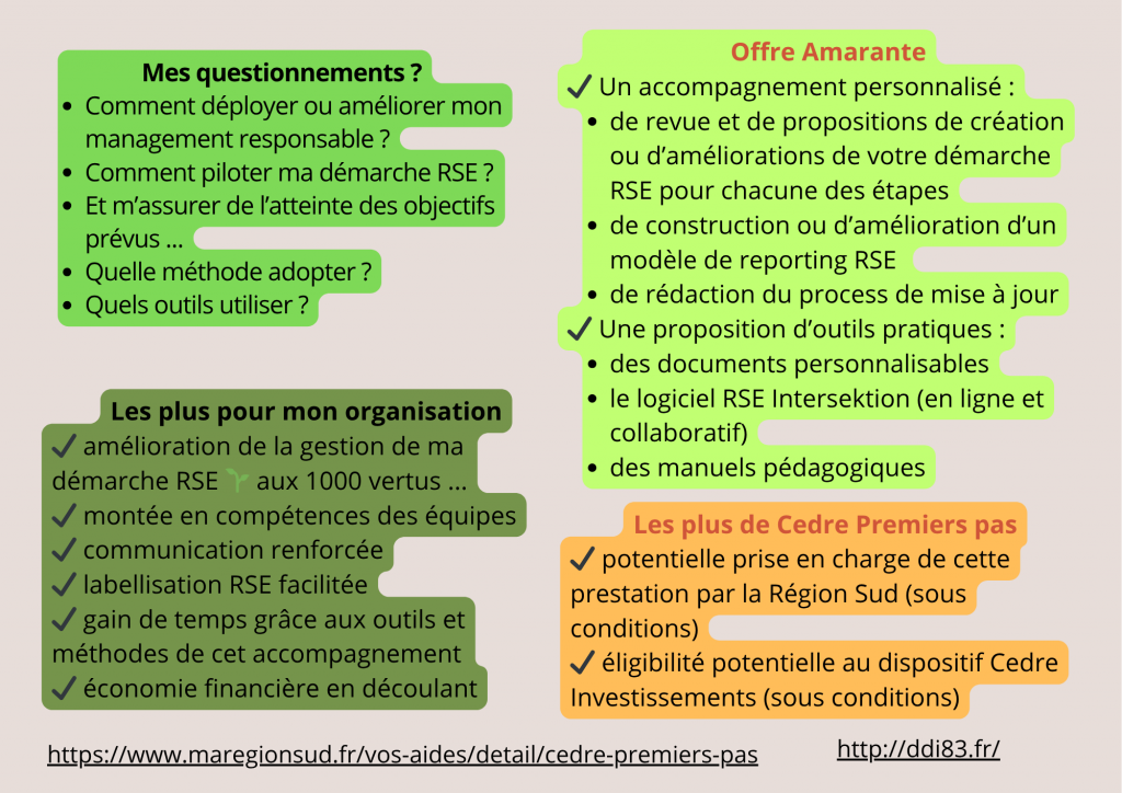 ==> Ce site web ddi83.fr présente les étapes à suivre pour mettre en place une démarche RSE.